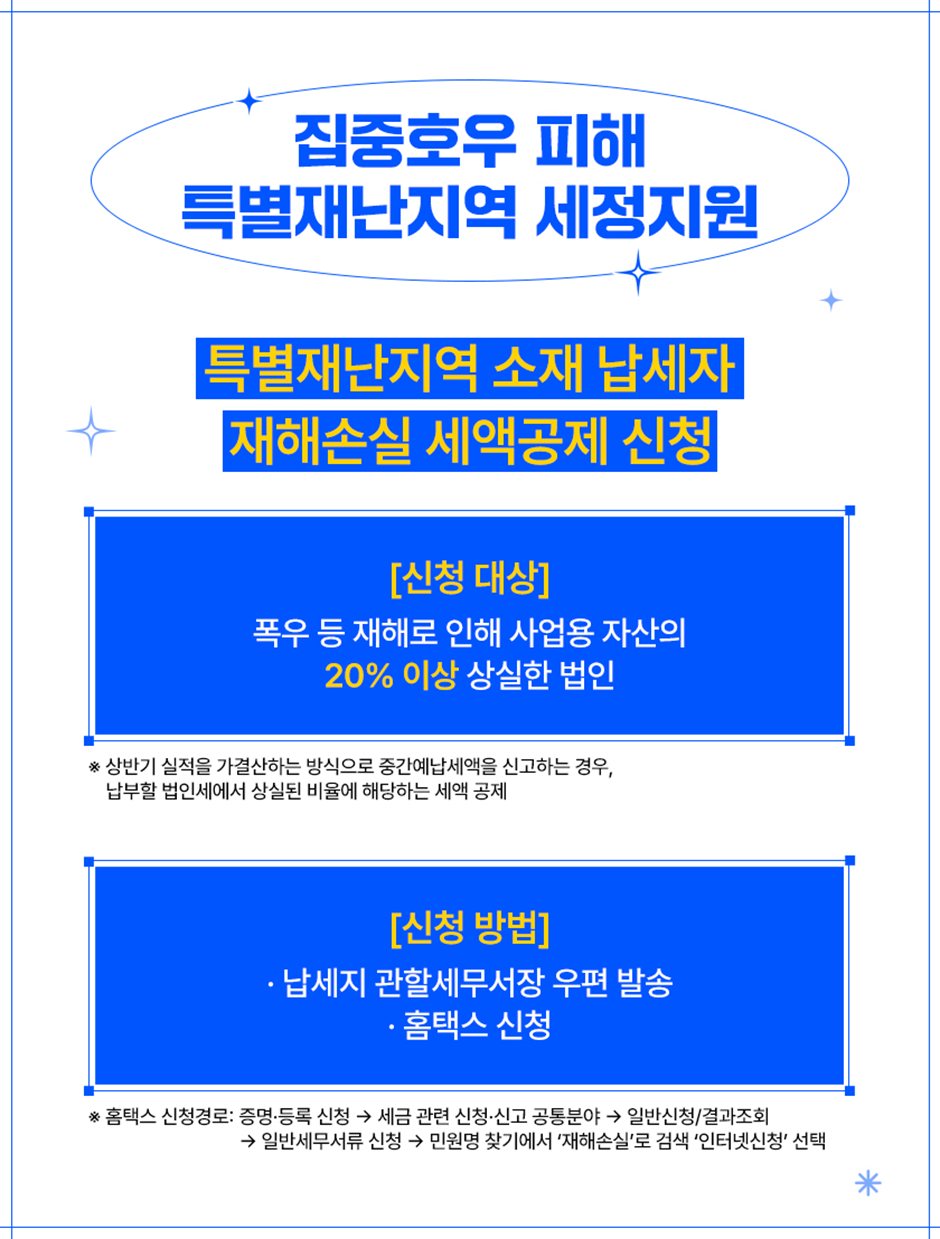 특별재난지역 세정지원 신청과 더 자세한 내용은|