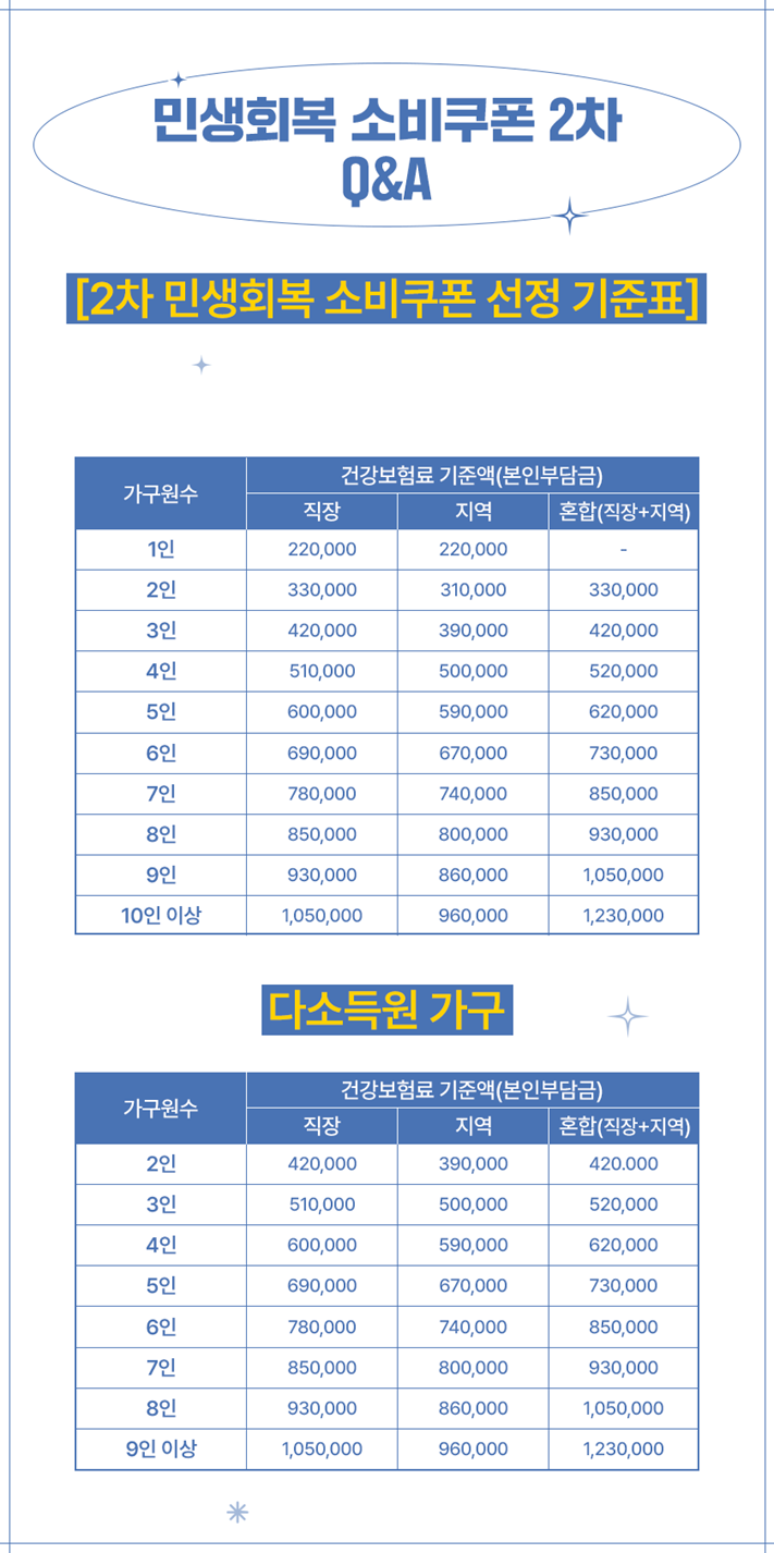 [2차 민생회복 소비쿠폰 선정 기준표]