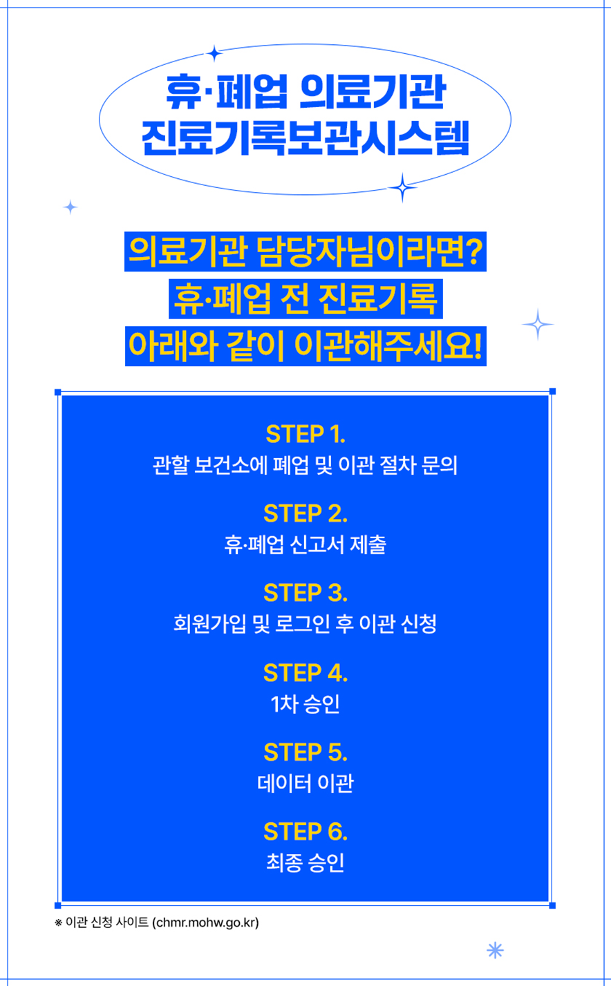 ※ 의료기관은 폐업 후 진료기록 보관 부담과 발급 의무, 개인정보 유출 위험을 줄일 수 있고