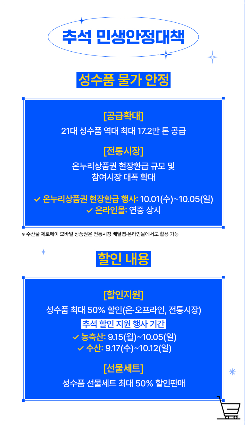성수품 최대 50% 할인(온·오프라인, 전통시장)