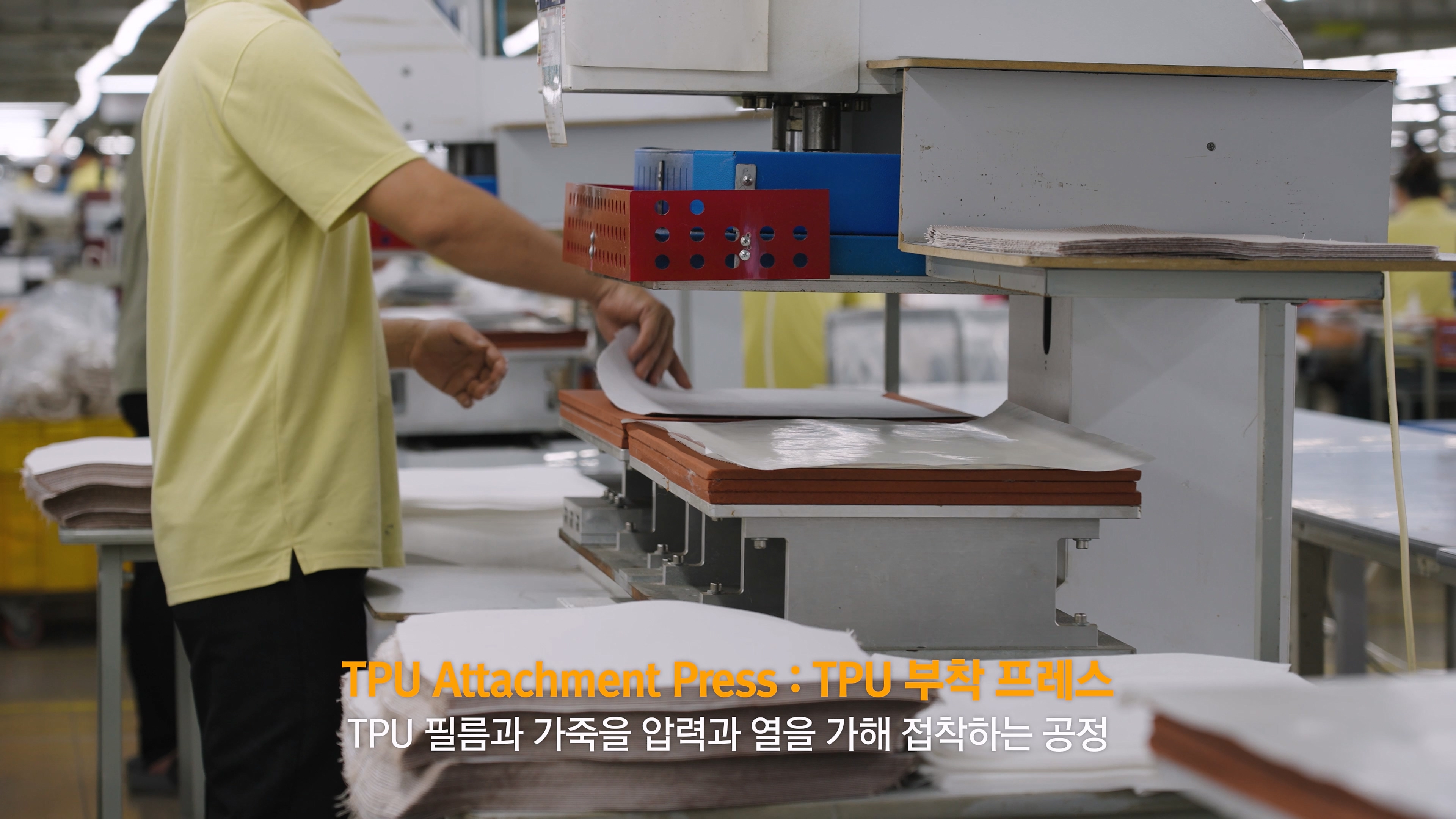 TPU 부착 프레스 공정입니다.