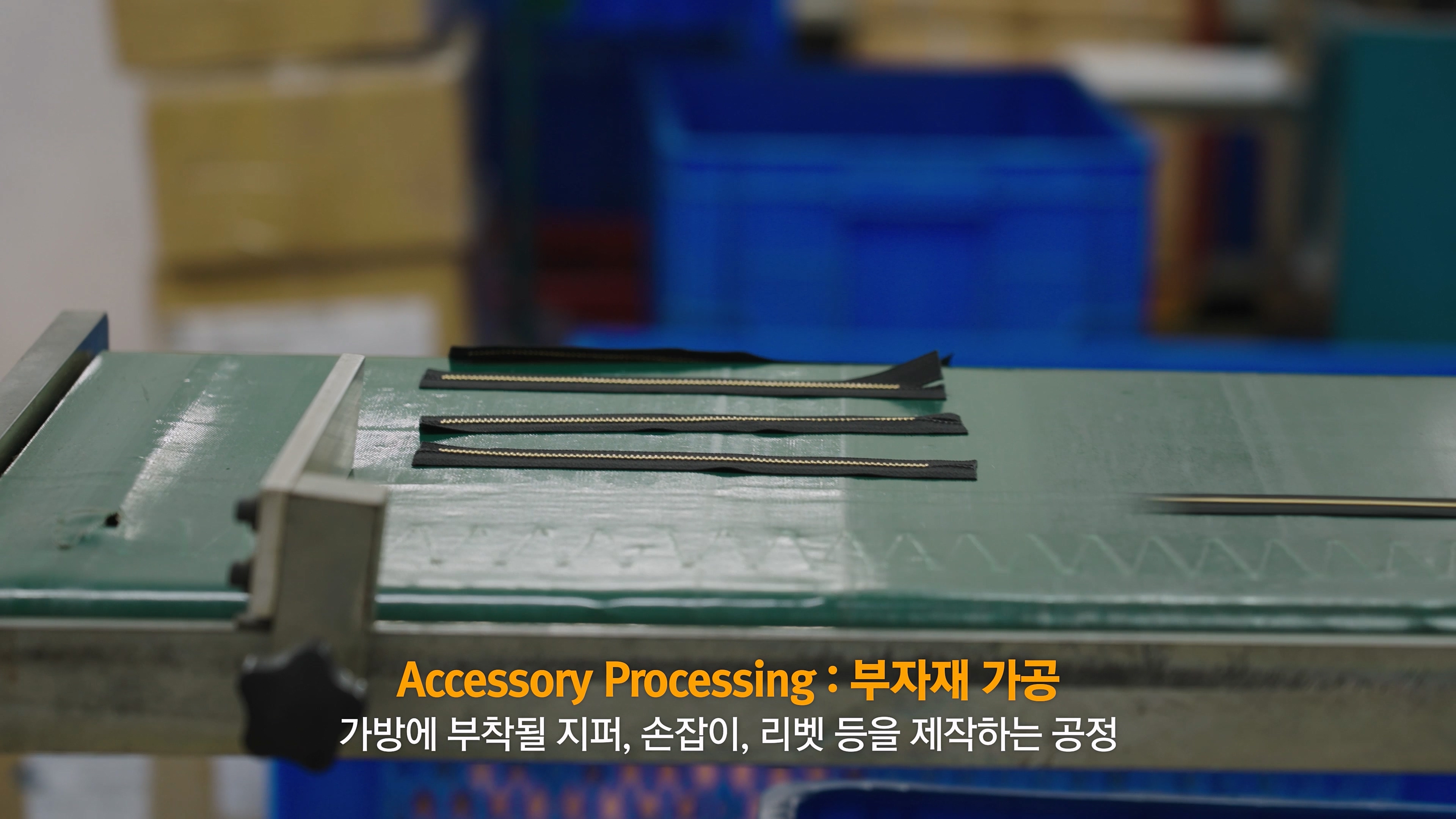 지퍼와 손잡이, 라벨 등 부자재를 제작합니다.