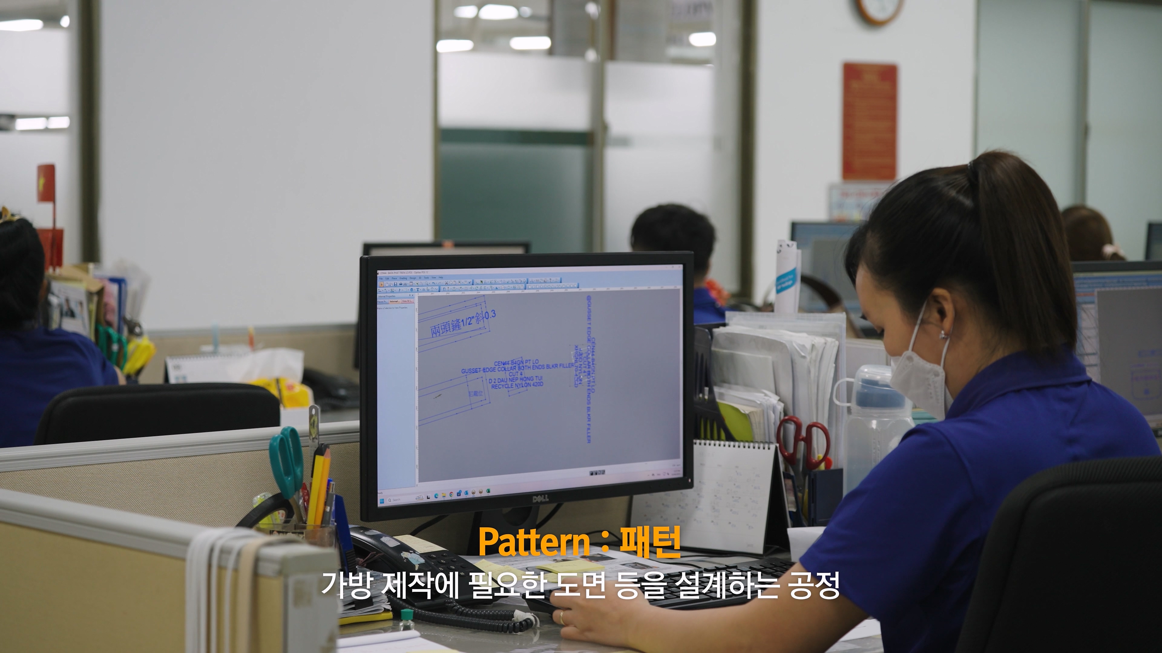 가방 제작에 필요한 도면 등을 설계하는 공정을 거칩니다.