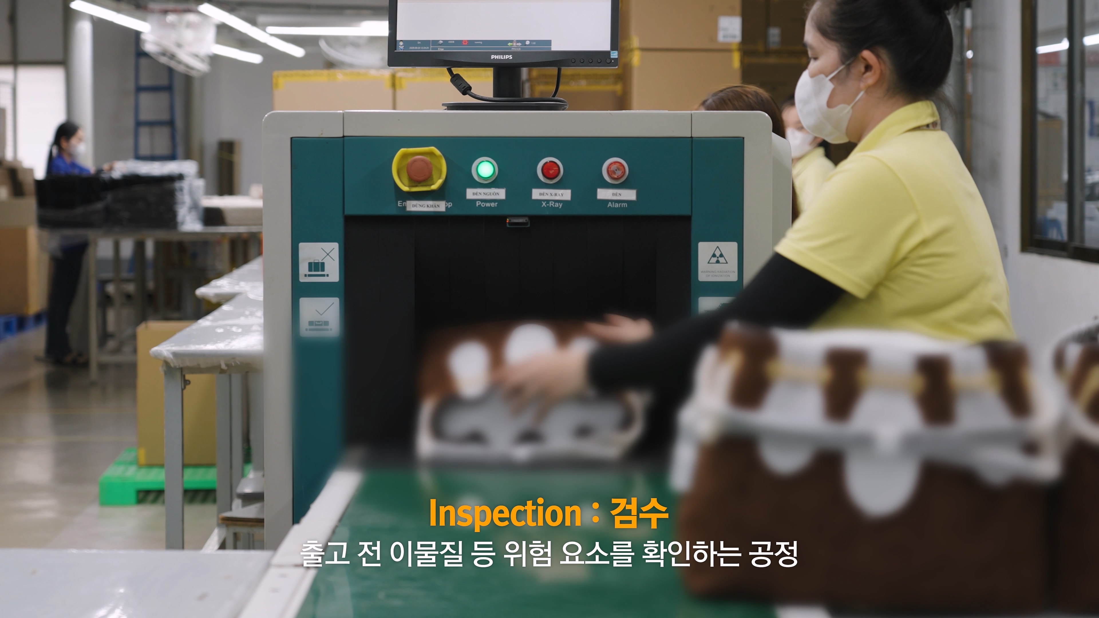 출고 전 이물질 등 위험 요소를 확인하는 검수 공정입니다.