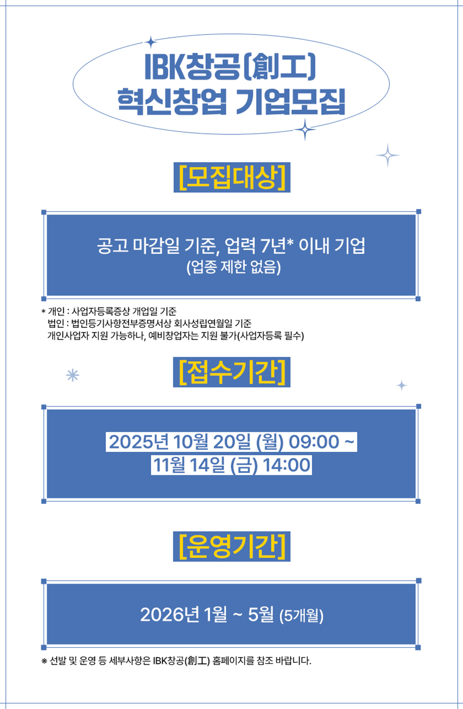 ※ 선발 및 운영 등 세부사항은 IBK창공(創工) 홈페이지를 참조 바랍니다.