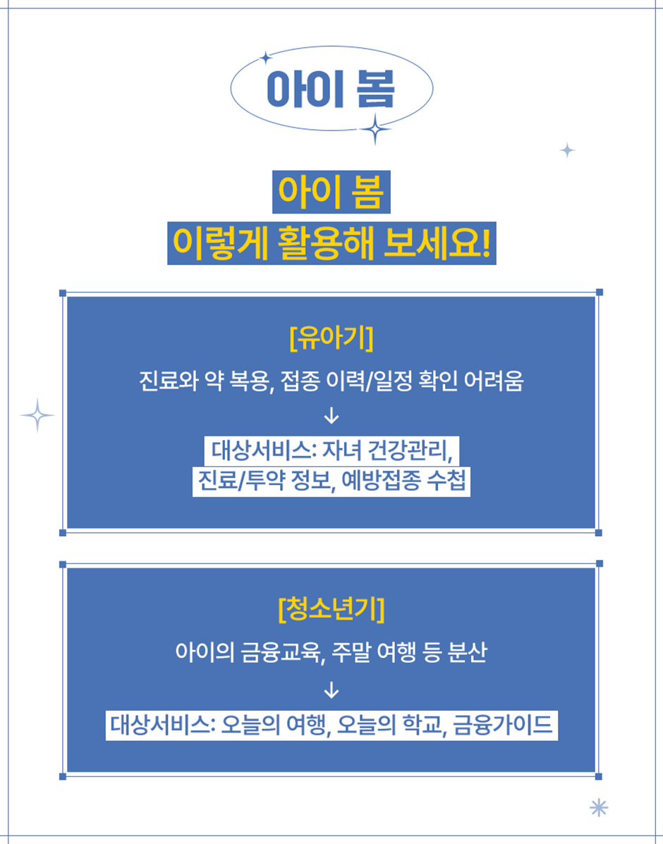 대상서비스: 자녀 건강관리, 진료/투약 정보, 예방접종 수첩