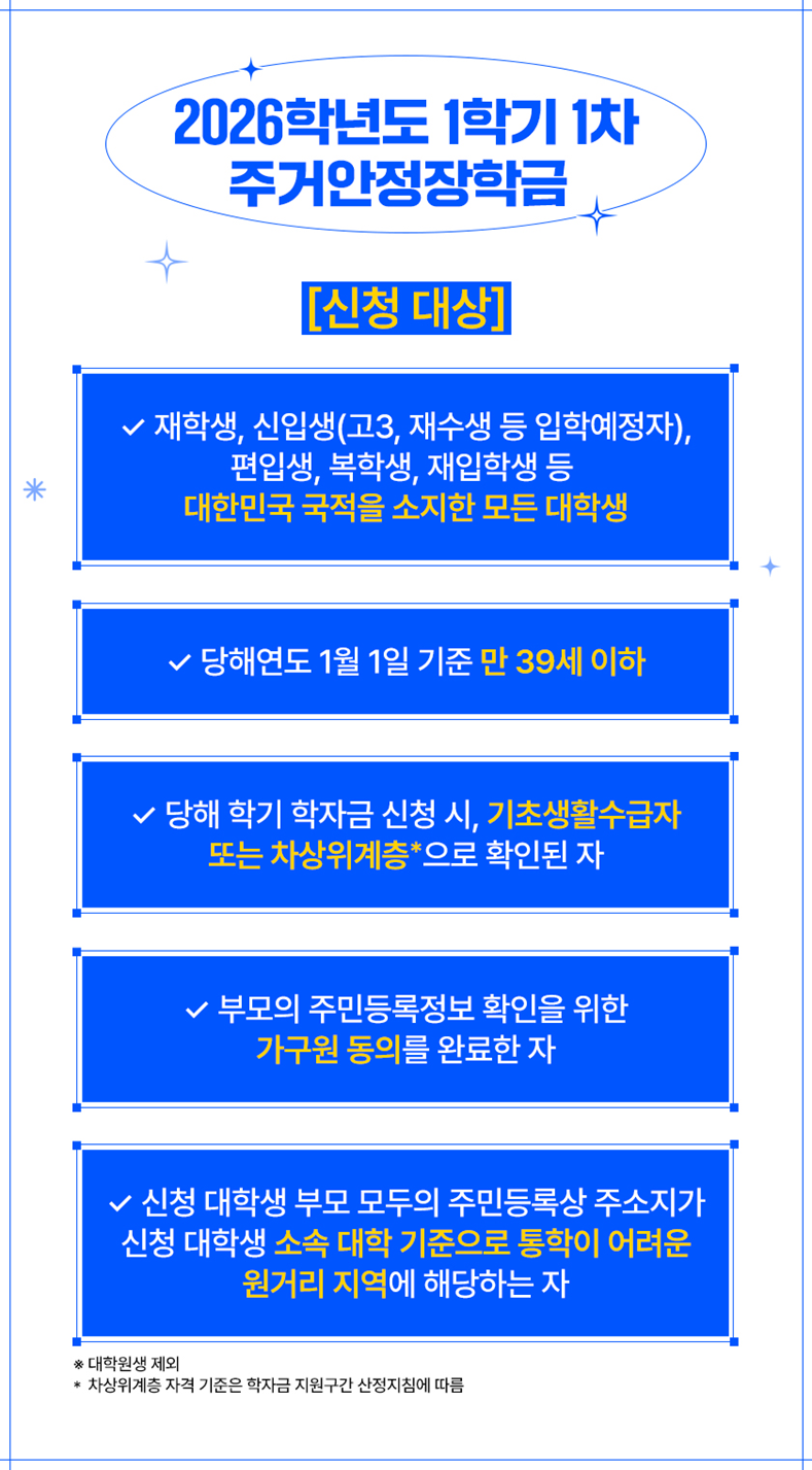 2026학년도 1학기 1차 주거안정장학금에 대해