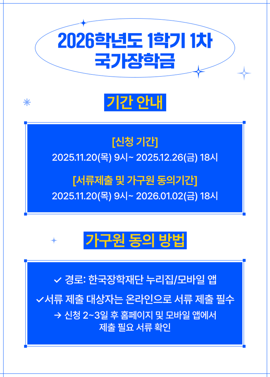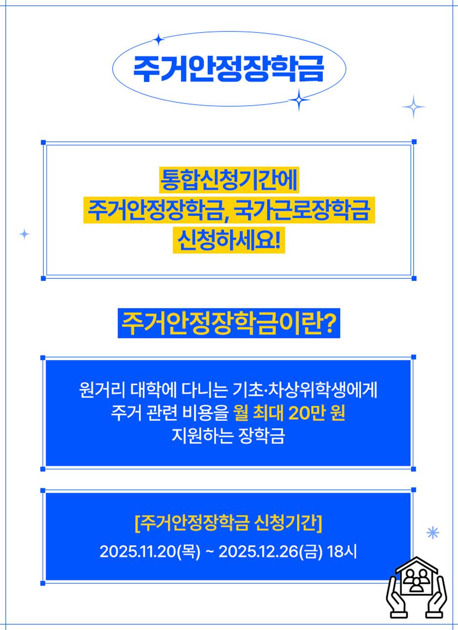 | 2026학년도 1학기 1차 주거안정장학금 신청하세요! (0) | 2025.12.10 |