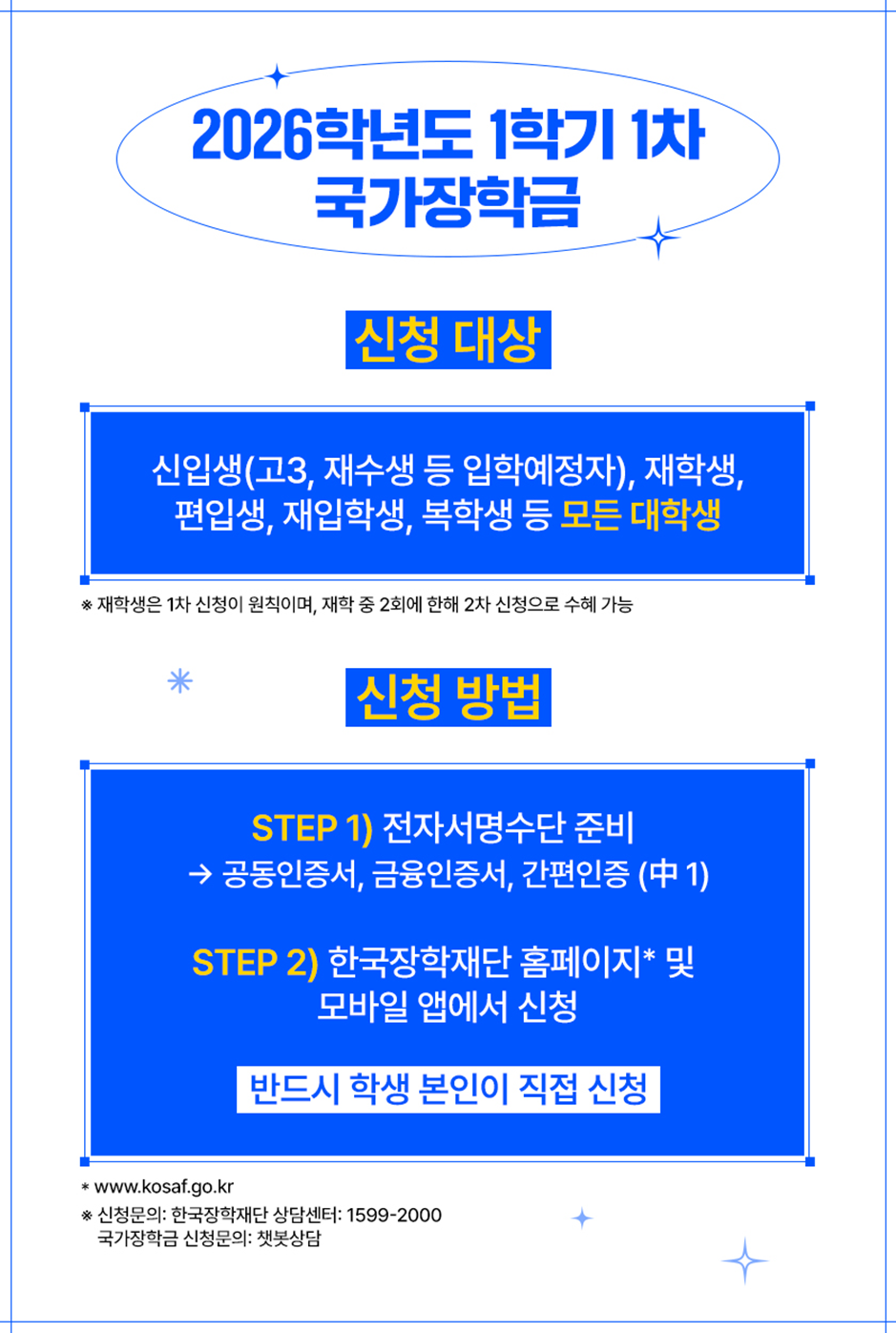 ※ 신청문의: 한국장학재단 상담센터: 1599-2000