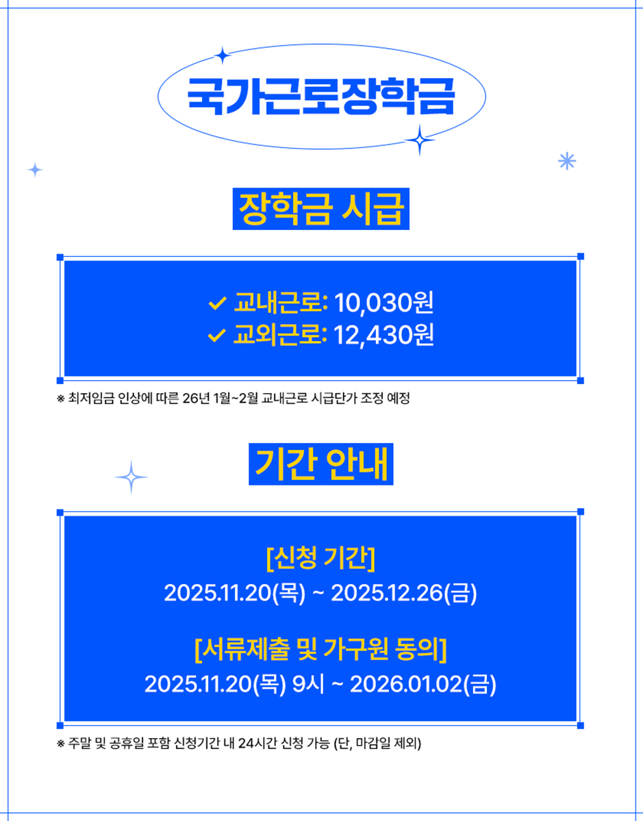 ※ 최저임금 인상에 따른 26년 1월~2월 교내근로 시급단가 조정 예정