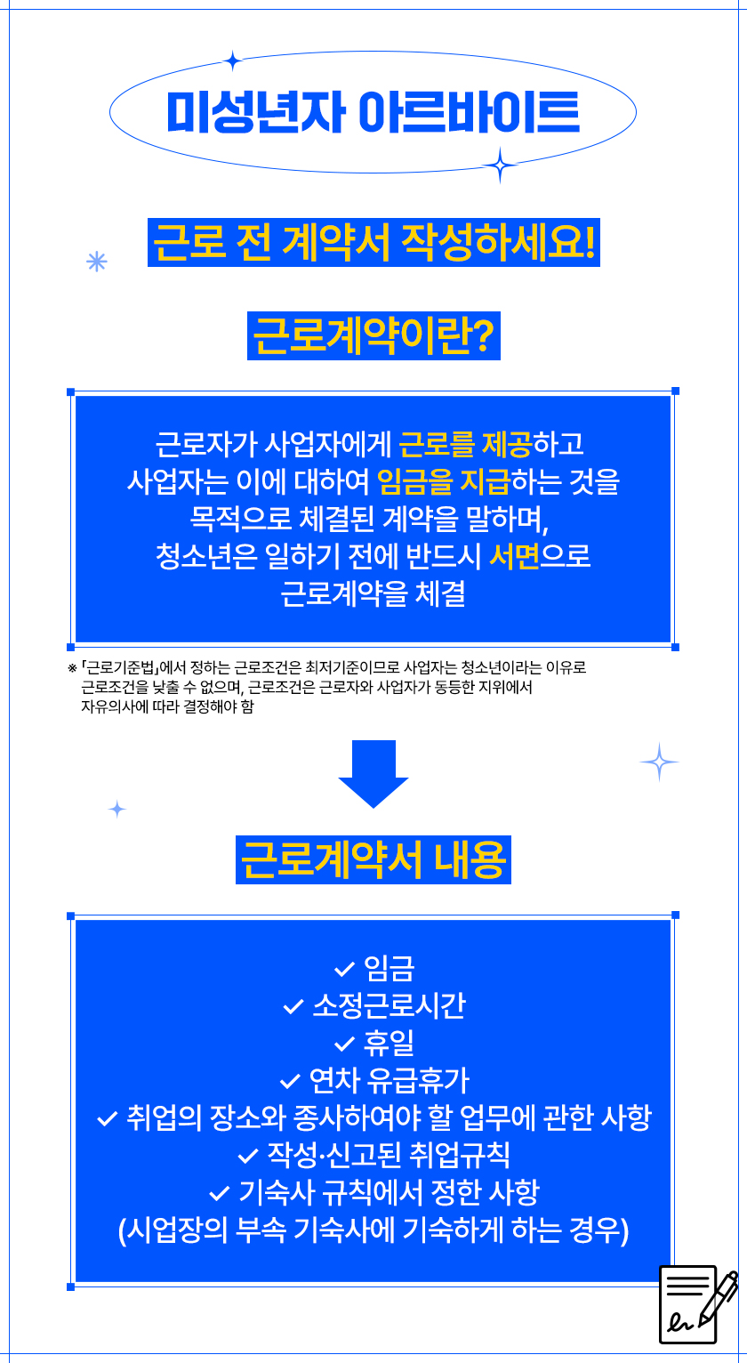 청소년은 일하기 전에 반드시 서면으로 근로계약을 체결