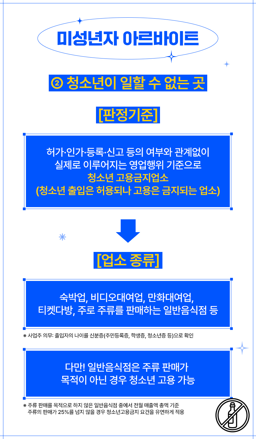 ✓ 만 18세 이상: 청소년 고용 금지 업소 제외 가능