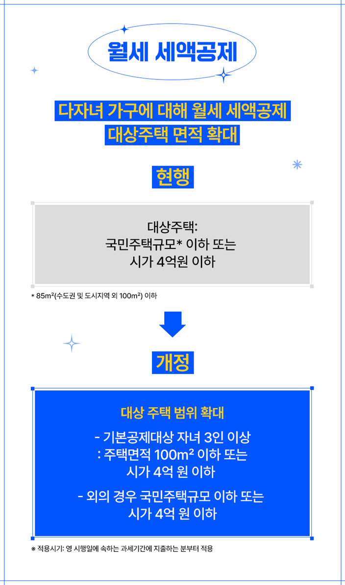 - 외의 경우 국민주택규모 이하 또는 시가 4억 원 이하