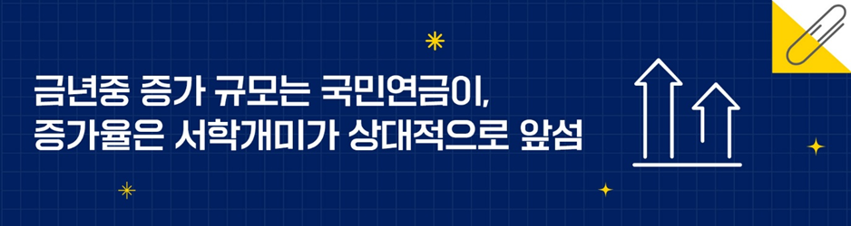 금년 중 증가 규모는 국민연금이, 증가율은 서학개미가 상대적으로 앞섬