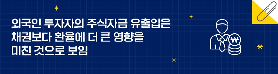 외국인 투자자의 주식자금 유출입은 채권보다 환율에 더 큰 영향을 미친 것으로 보임
