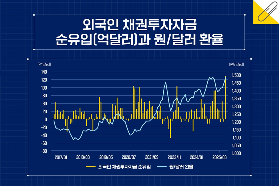 외국인 투자자의 채권 투자자금 순유입은 환율에 미치는 영향은 제한적