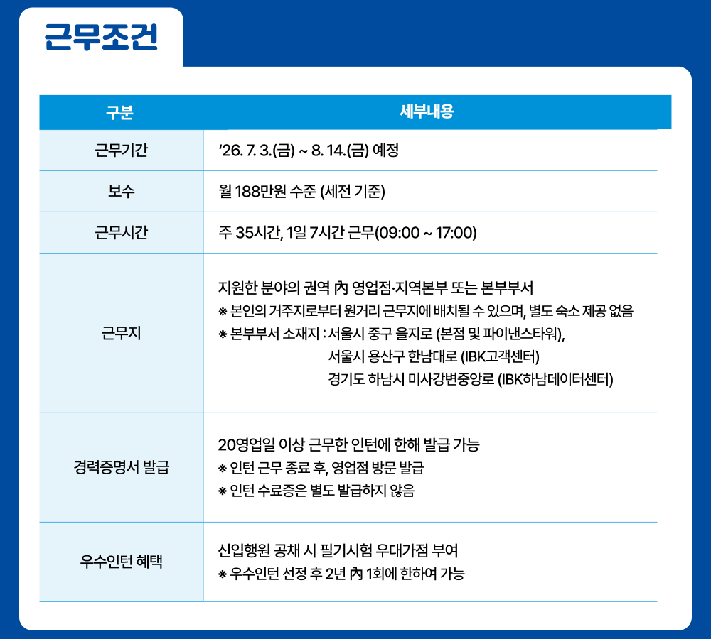 2026년 하계 IBK기업은행 체험형 청년인턴 채용공고 더 알아보기