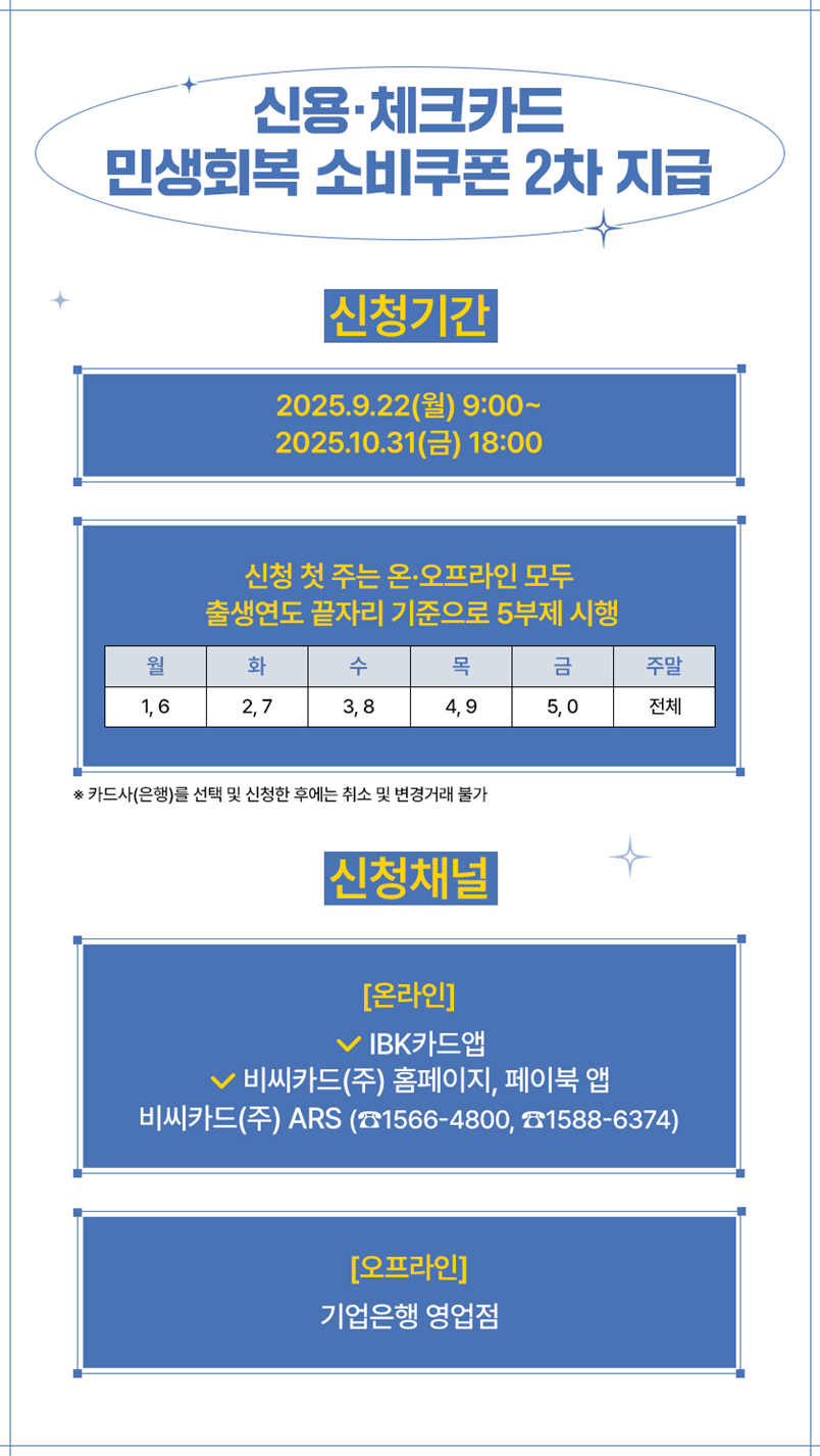 IBK기업은행 신용·체크카드를 통한 「민생회복 소비쿠폰」 2차 지급